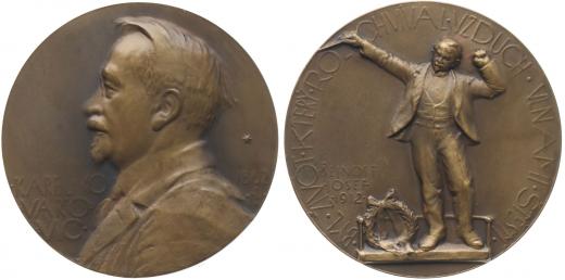 Karel Kovařovic - dirigent Národního divadla, 1912 Poprsí zleva, nápis / postava zpředu s taktovkou v ruce, 3řádk.nápis, opis, Sign., Bronz 52 mm, Boh.42, náklad 190 ks