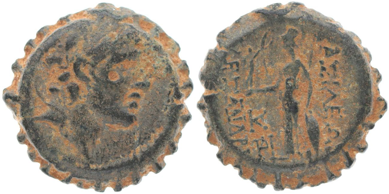 AE 19 mm, portrét zprava / stojící Niké, po stranách nápisy SG.7040