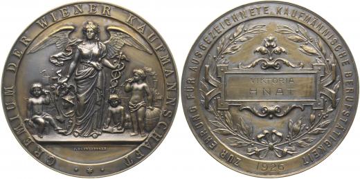 Schwerdtner - Vídeňská hospodářská komora, 1926 Alegorický postava s dětmi, opis / ve věnci udělení VIKTORIA HNAT, opis, Sign., Postř.bronz 60 mm