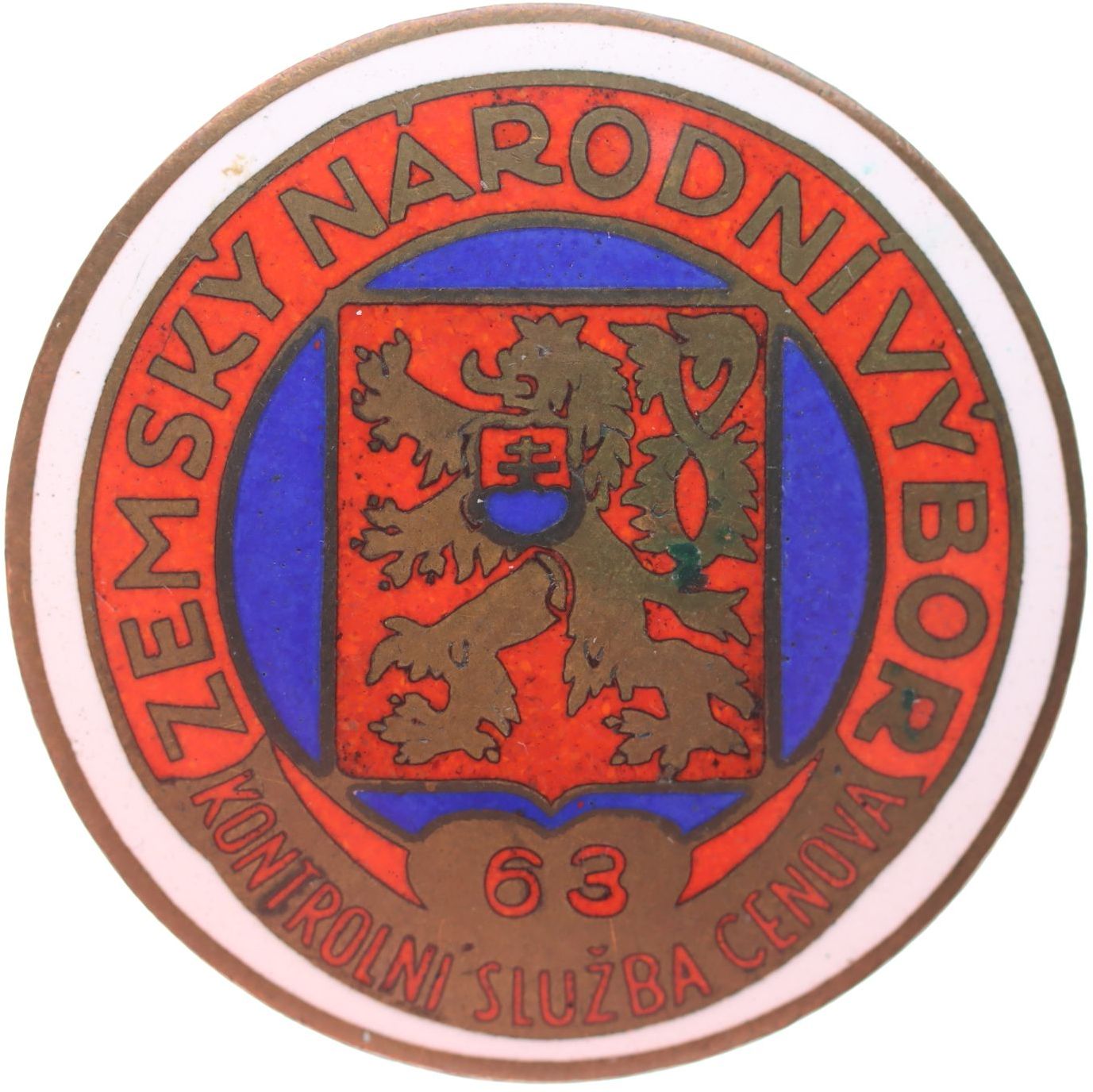 Zemský národní výbor - kontrolní služba cenová č.63 z let 1945 - 48, Smalt.kruh.odznak 43 mm_připínací R!