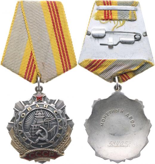 Řád prácovní slávy, III.st., var.2, čísl.:584052, Ag nepuncov. znač.Monětnyj dvor, Her.2.10.3_orig.stuha