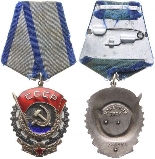 Řád rudého praporu práce, čís.726941, typ 6, var.2 Smaltov. Ag nepuncov., znač.Monětnyj dvor, Barac.957, Herf.2.7.4 _ orig.stuha