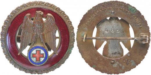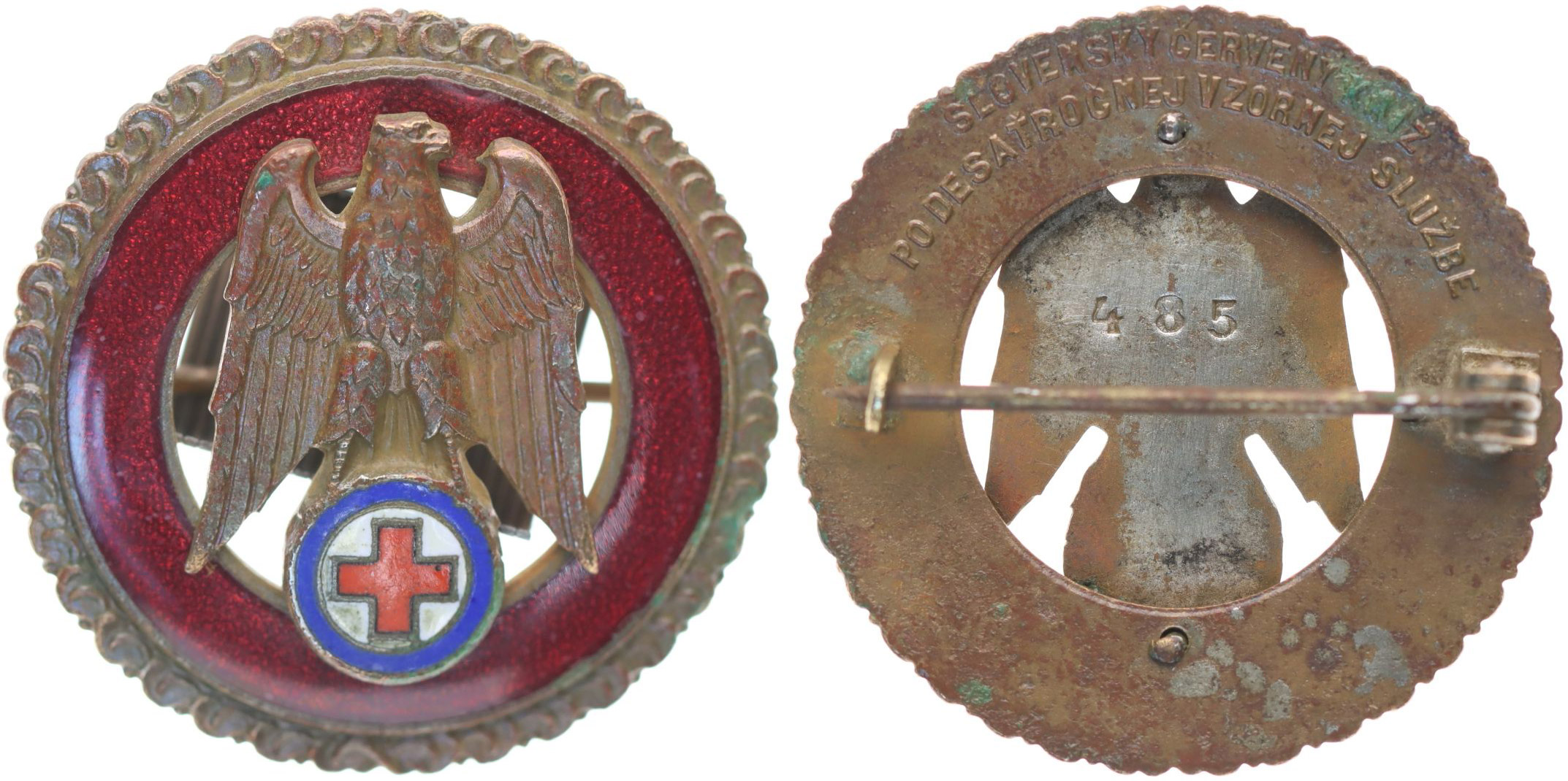 Odznak "SLOVENSKÝ ČERVENÝ KŘÍŽ" - po 10 ročnej vzornej službe, stříbrný smaltovaný, čísl.435, 34 mm, Marc.25.1.2, nápis v rev. Marc.25.3.2_připín. R!