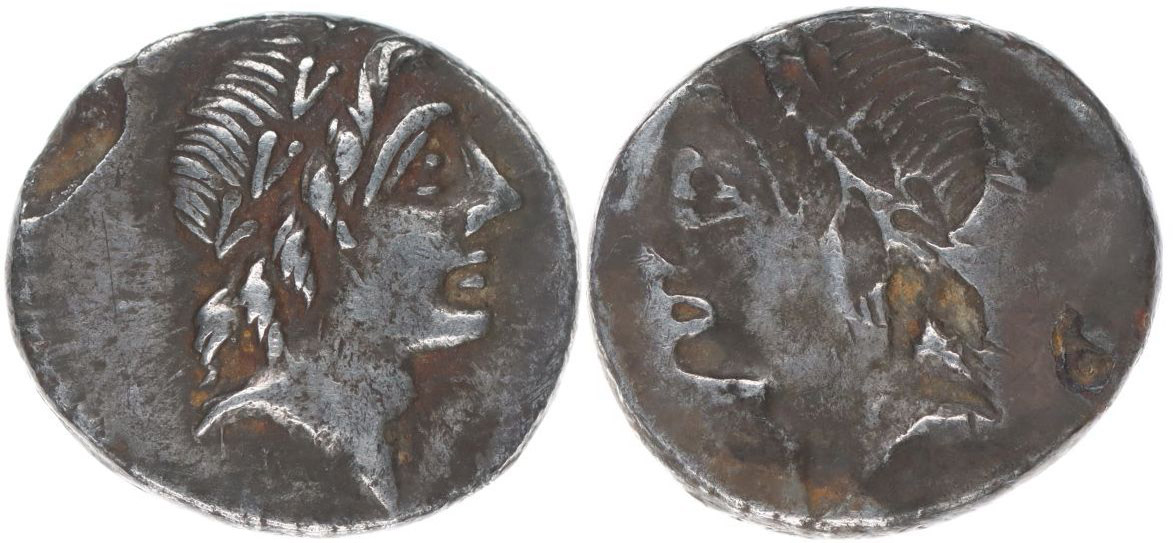 AR Denár, hlava Apollona zprava / inkus aversu (hlavy) Crawford.335/2, S.215, Al.1149, Ves.1134