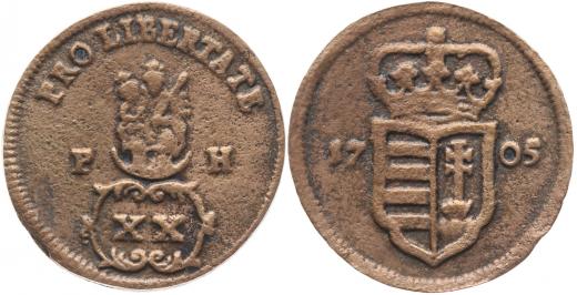 XX Poltura 1705 P.-H., bez značky mincovny, Husz.1529