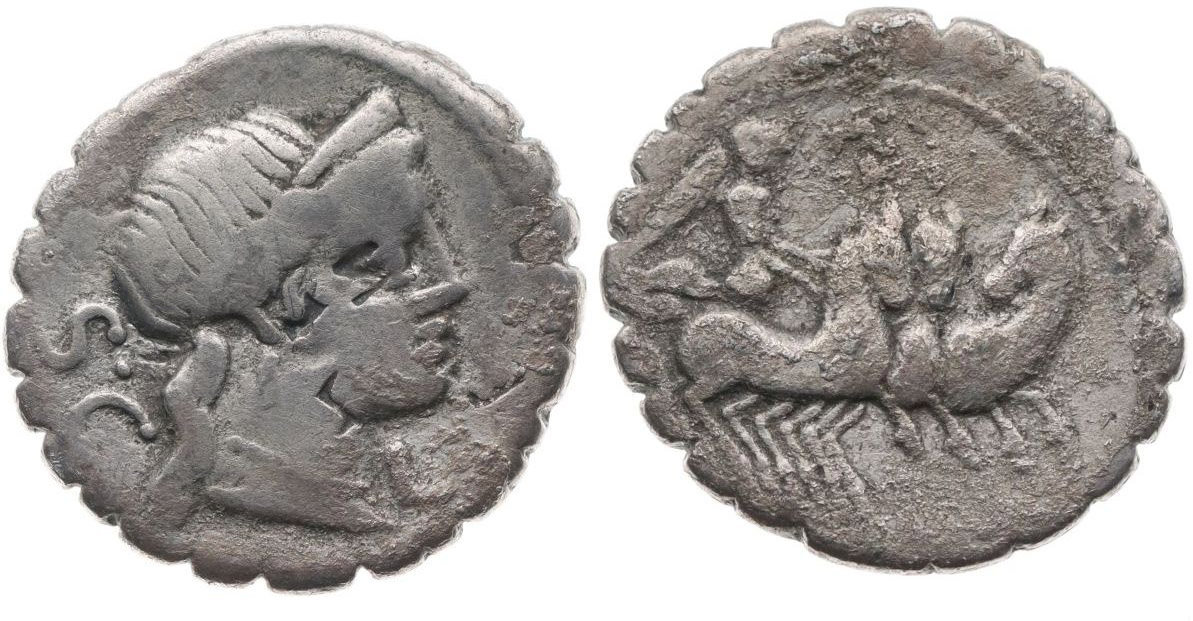 AR denár - serratus, hlava Venus zprava, nápis "SC" / Victoria na trize zprava, nápis "C NAE BALB", Crawford.382/1, S.309, Al.1277, Ves.1201