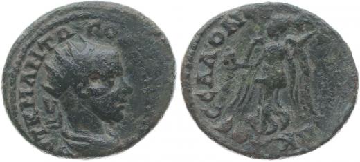 AE 25 mm, hlava zprava / Niké drží palmový list, řecký opis Varbanov.4545, SGI.3641pod.
