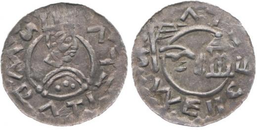 Denár, Ca.354a, F.IX/10 - široká koruna, odlišná kresba portrétu