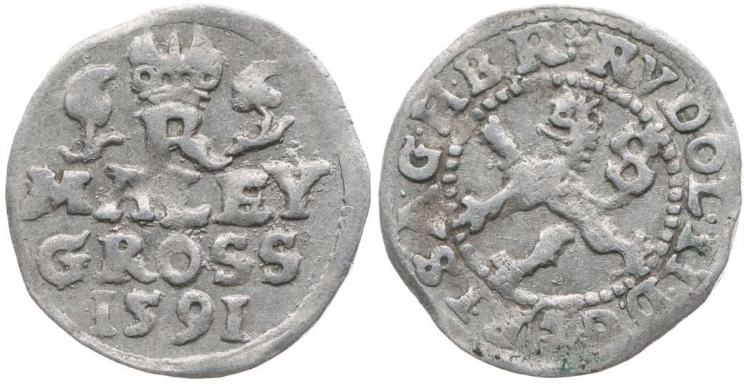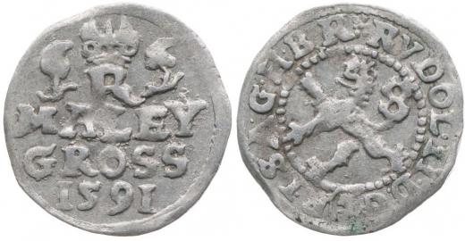 Malý groš 1591, K.Hora-Šatný, HN.1b (opis 7a), Ja.6b