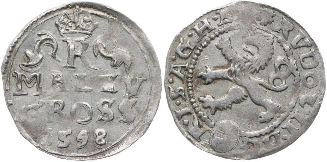 Malý groš 1598, K.Hora-Dominik, HN.8 (opis 7a), Ja.8a