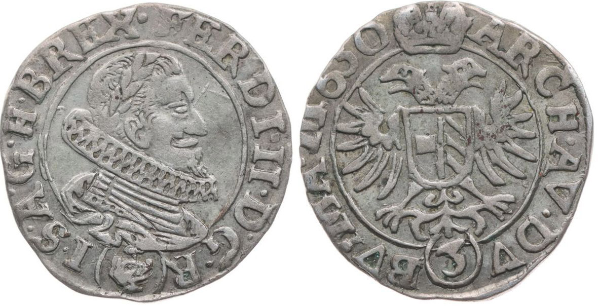 3 Krejcar 1630, Praha-du Bois, zkrácený letopočet J.29b, MKČ.760a_R!