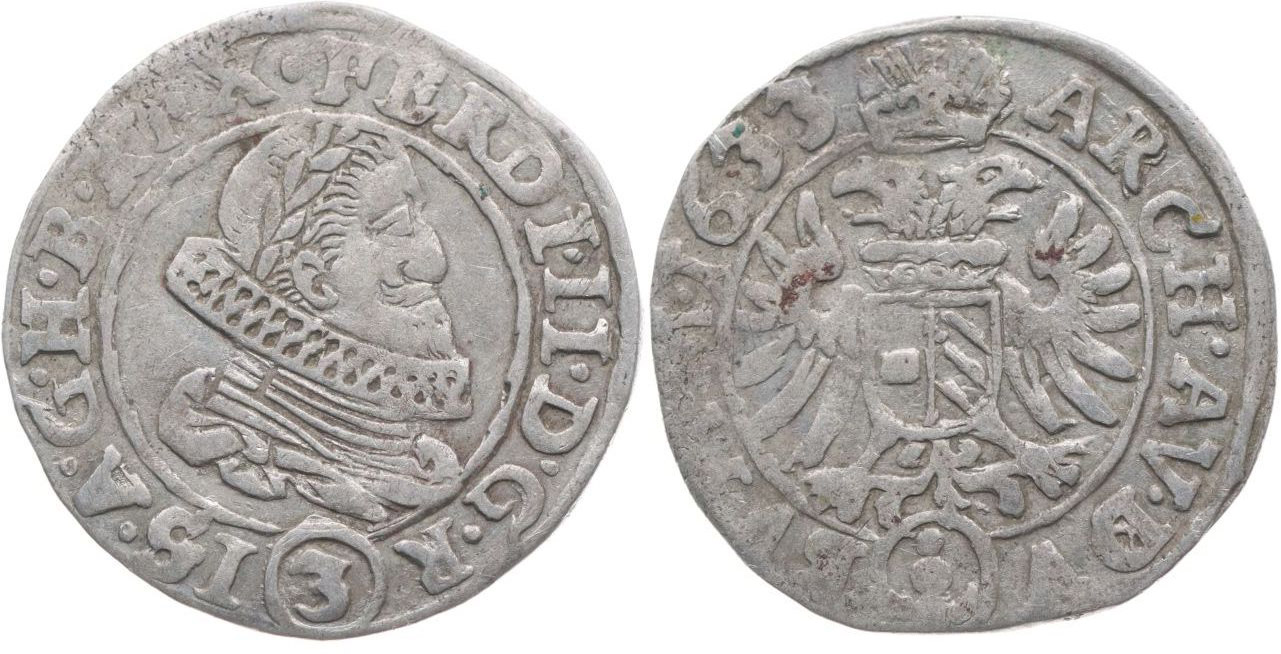 3 Krejcar 1633, Praha-Schuster, J.31b, MKČ.763, Her.1157