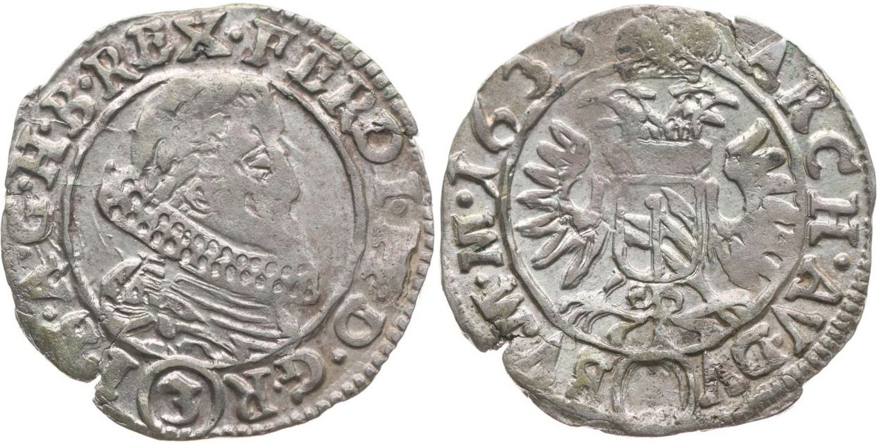 3 Krejcar 1635, K.Hora-Neumann, MKČ.816, Ja.34c, Her.1189 _dr.ned.v av. R!