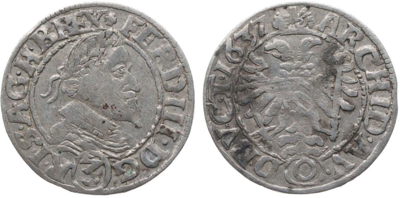 3 Krejcar 1637, Olomouc-Sonnenschein, MKČ.1239, Her.788a