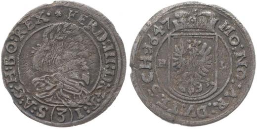 3 Krejcar 1647 H-L, Těšín, Hans Loss, MKČ.1350, Fr3077, SJ.99/42 Kop.5692_č.por.stř. RR!