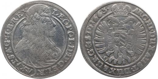 XV Krejcar 1663 G-H, Vratisl.-Hübner, Nech.677, Höll.63.2.1, MKČ.1596 _dr.por.stř.v av.