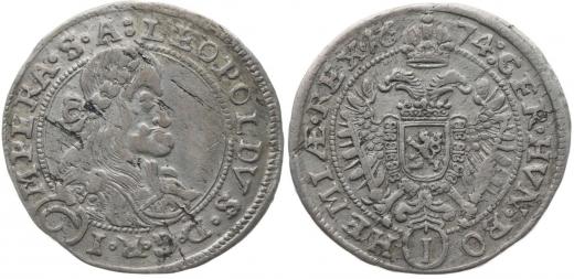 6 Krejcar 1674, Praha-Janinalli, Nech.166, MKČ.1412, Ja.16, Her.1192 _dr.v.stř. v av. R!