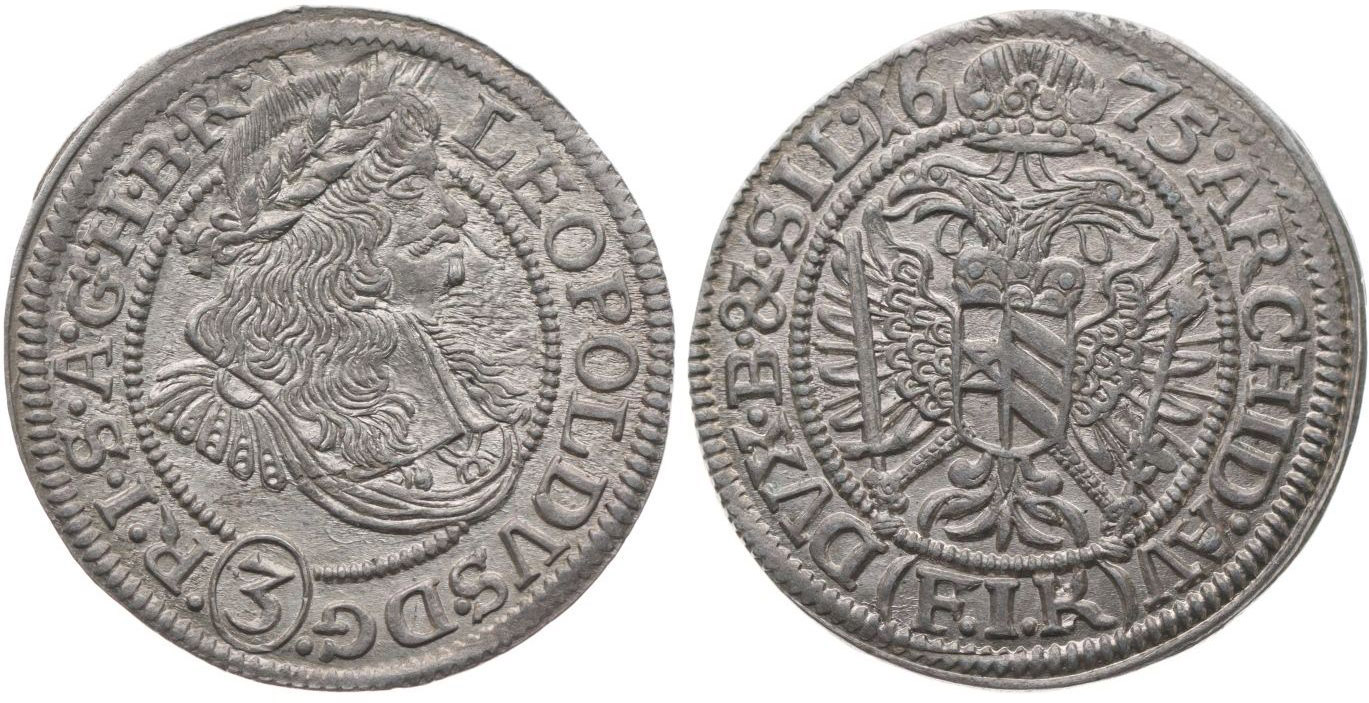 3 Krejcar 1675 FIK, Opolí-Kirschenhoffer, Nech.814, MKČ.1664, Fr.650 Her.1554_R!