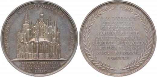 F.Putinati - 100 let svatořečení Jana Nepomuckého, 1829#Ag Chrám Sv.Víta, 4řádk.nápis v úseči, opis / 9řádk. nápis ve vavřínovém věnci, Sign., Ag 50 mm, 62,89 g, Don.4654, Přib.574_R!