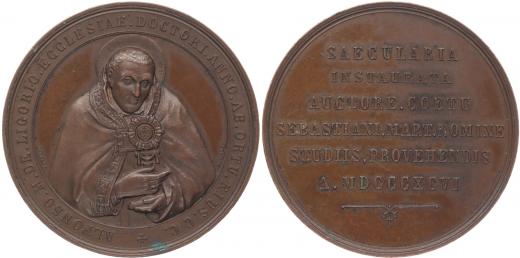 Sv.Alfons z Liguori - na památku 200.výr.narození 1696 - 1896 Poprsí sv.Alfonse čelně, opis / 6řádk.nápis, Sign.Johnson a.c.inc. Bronz 44 mm