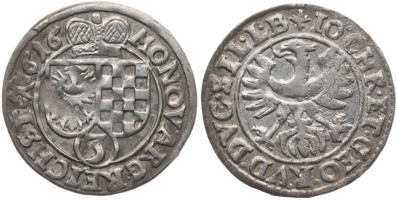 3 Krejcar 1616 C-C, krácený letopočet, SJ.136/48, Sa.168/67, Kop.4999