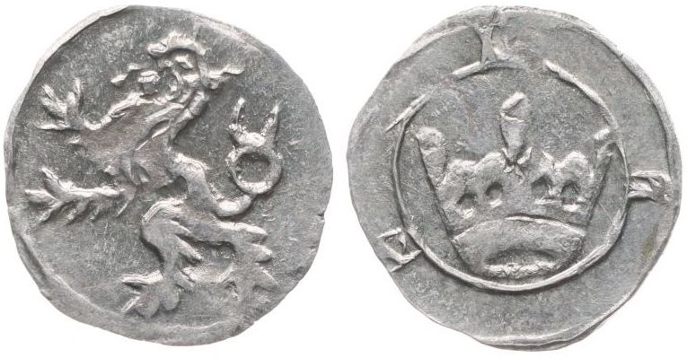Haléř b.l. (15.stol.), lev / koruna, Kop.8673, Sa.115/43, SJ.-_RR!