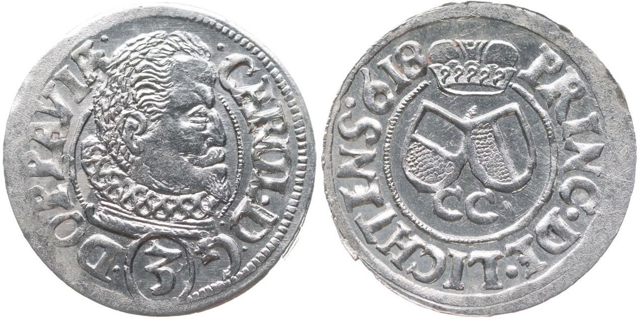 3 Krejcar 1618 CC (Cantor), SJ.30/10, Sa.364/157, Kop.6370