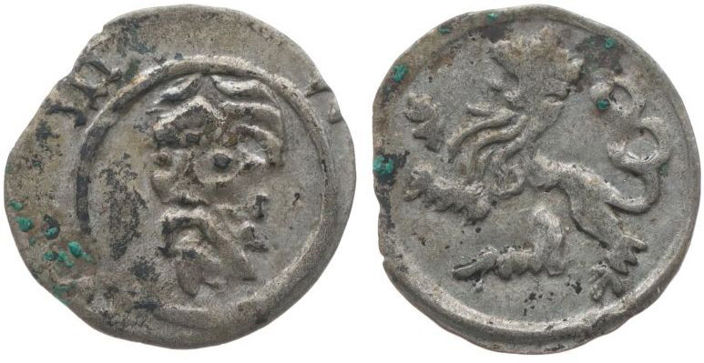 Haléř b.l. bez zn., svatý Jan / český lev, Sa.67/27, Kop.8765a