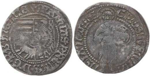 Groš b.l. znak / Sv.Jan, bez "W", s tit.Matyáše Korvína Kop.8774, Sa.76/29, SJ.9/8