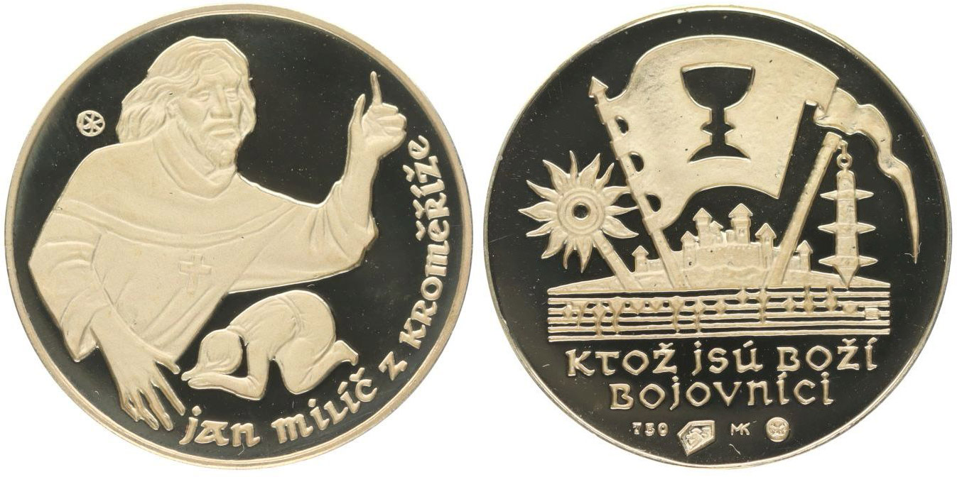 Sign. - Jan Milíč z Kroměříže, b.l. (2004), z cyklu "doby husitské", Sign. (D.Kartáková), Punc.750, Au 21 mm, 6 g_orig.kapsle