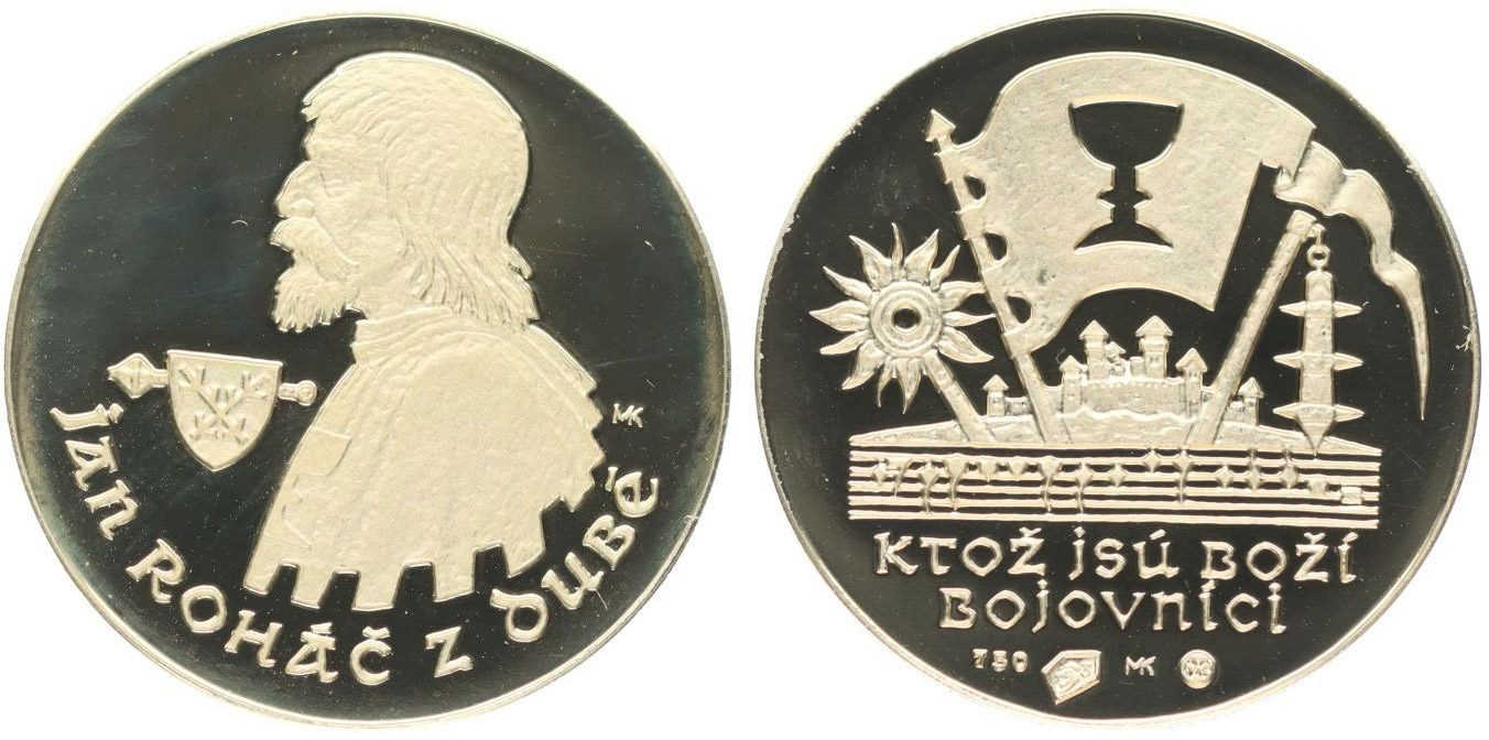 Sign. - Jan Roháč z Dubé, b.l. (2004), z cyklu "doby husitské", Sign. (M.Kovářík), Punc.750, Au 21 mm, 6 g_orig.kapsle