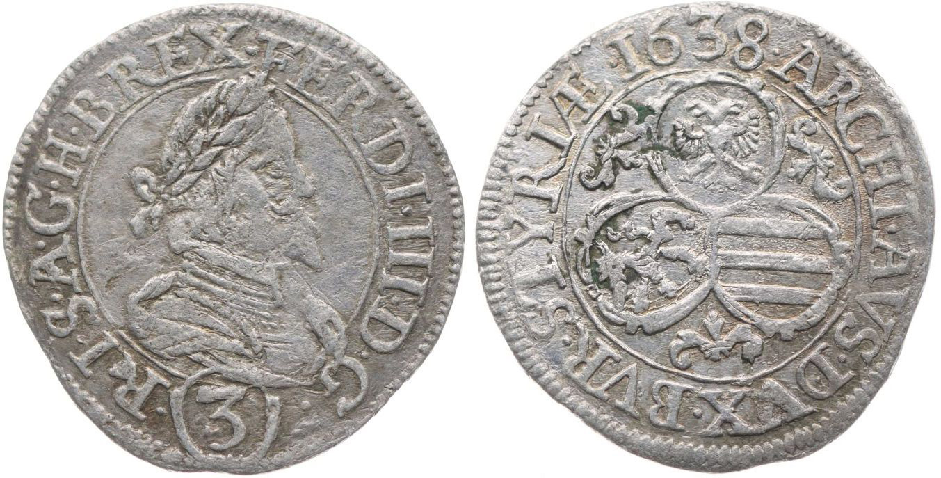 3 Krejcar 1638, Štýrský Hradec, MA.136 (tab.24/22), Her.692c
