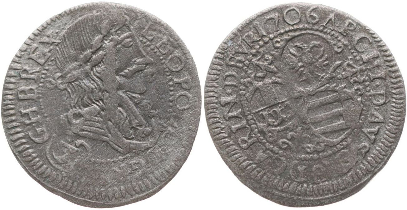 3 Krejcar 1706, Sv.Vít-Preiss, posmrtná ražba, Nech.2614_č.ned. R!