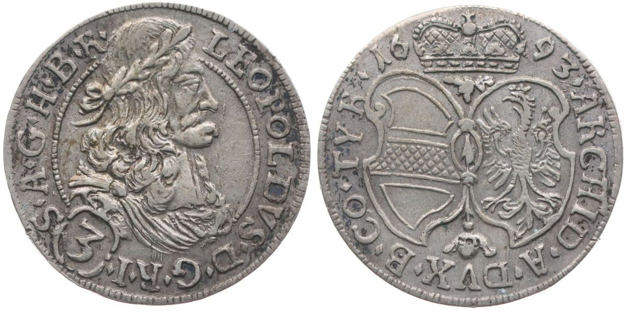 3 Krejcar 1693, Hall, Nech.2457, Her.1439