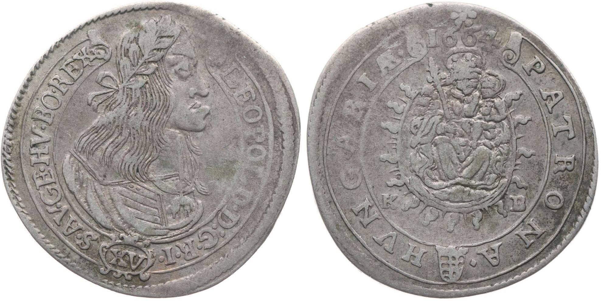 XV Krejcar 1664 KB, Nech.1151, Her.1035, Höl.64.1.4_dr.ned.