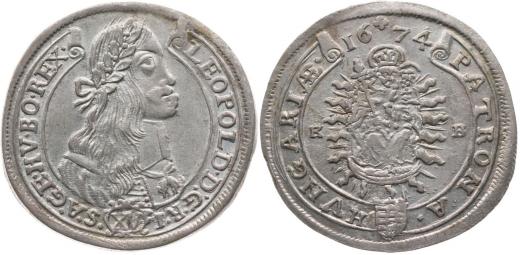 XV Krejcar 1674 KB, Nech.1155, Husz.1423, Höll.74.1.2, Her.1046