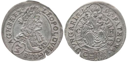 3 Krejcar 1696 C-H, Bratislava-Hunger, Nech.1659, Hus.1478, Her.1632 _dr.pr.stř.