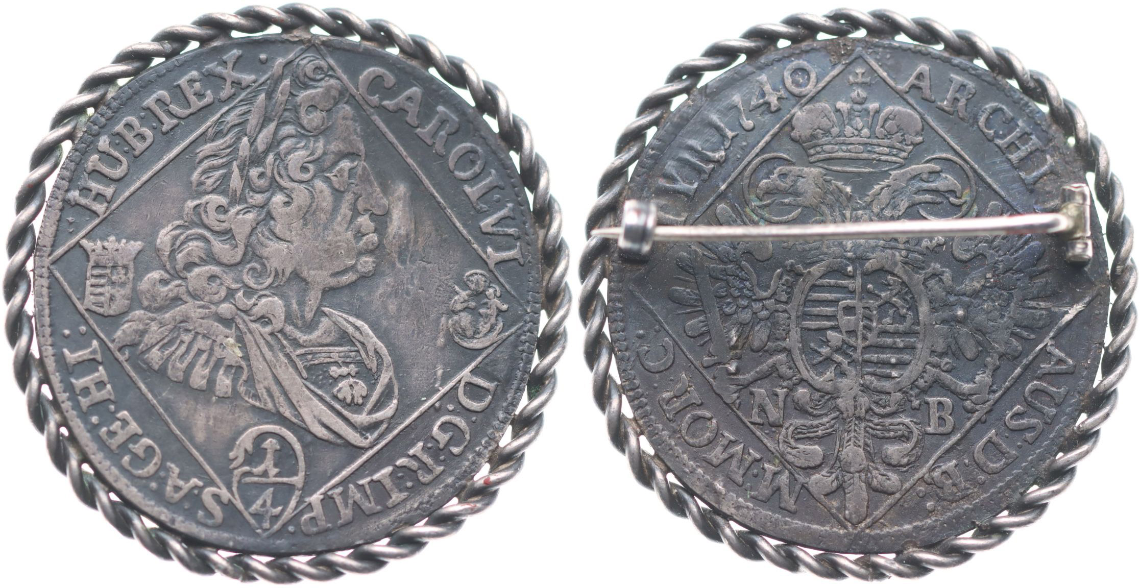 1/4 Tolar 1740 NB, Velká Baňa, Husz.1623, Her.626 _v ozdobném rámečku se sponou v reversu