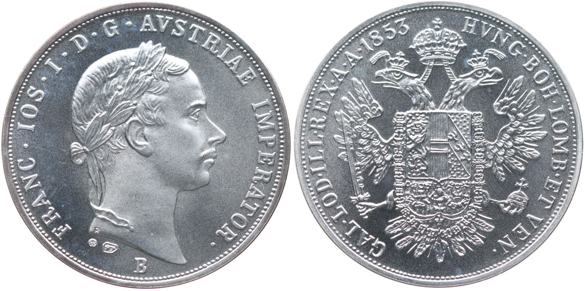 1/2 Tolar 1853 B - oficiální novoražba Ag 900/1000, 30 mm, 13,2 g vydala minc.Kremnica, náklad 200 ks _orig.kasple + dřev.etue + certifikát