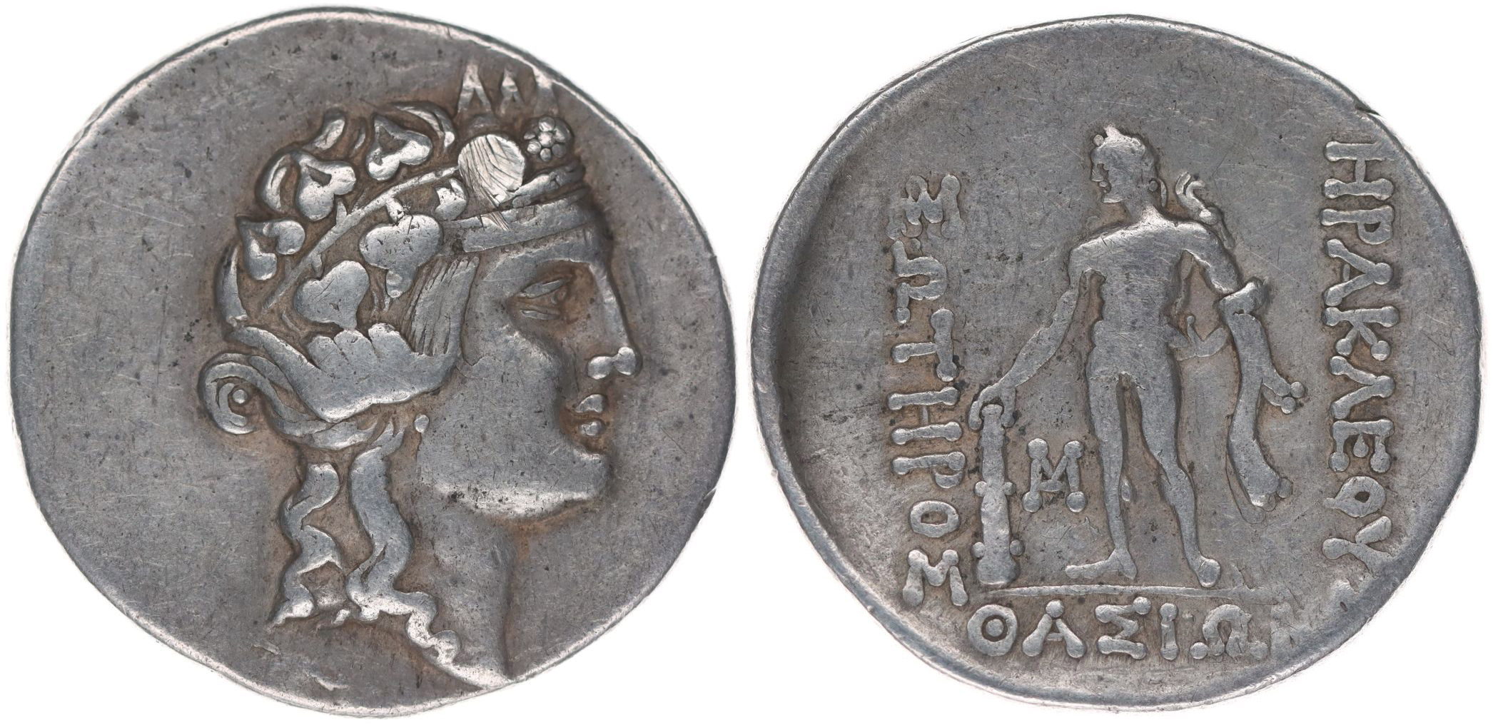 AR tetradrachma, Dionýsos zprava / stojící Heracles zleva s kyjem v pravé ruce, nápis, SG.1759, BMC.72-73, Cop.1039, 16.78 g