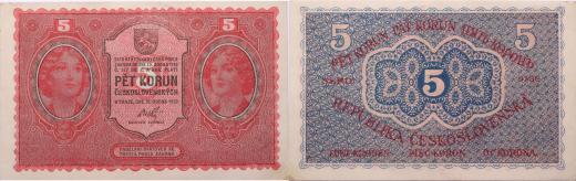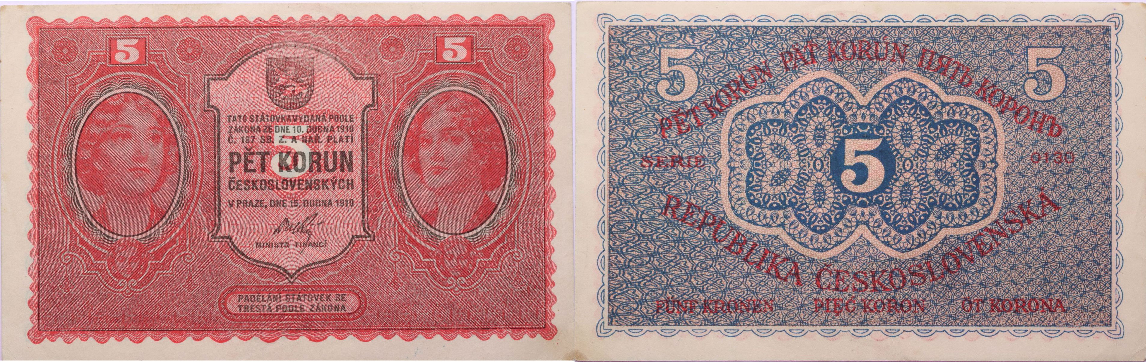 5 Kč 1919, série 0130, B.8, Hejz.8a_"neperf."