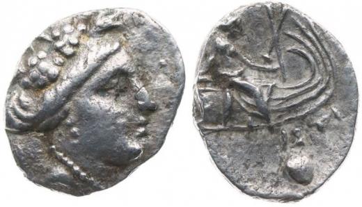 AR tetrobol, Nymfa Histiaia zprava / nymfa Histiaia sedící na přídi lodi, nápis, monogram, SG.2496, BMC.8.47-8, 1,56 g