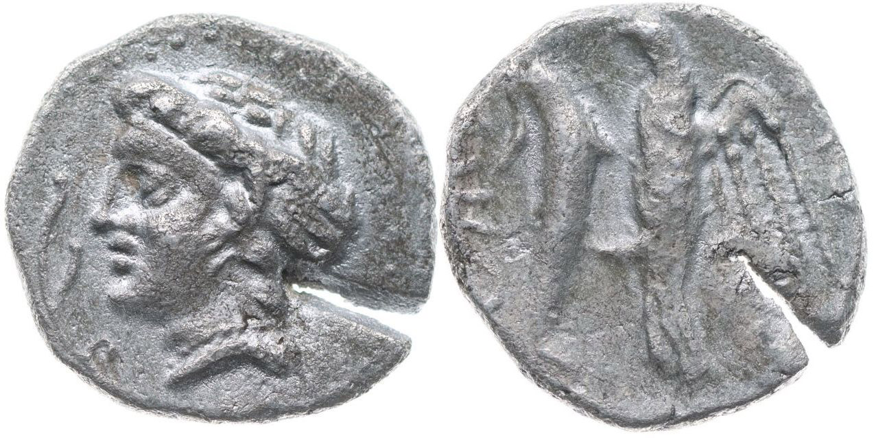 AR Drachma, hlava nymfy Sinope / orel nad delfínem, nápis, SG.3692_prasklý stř.