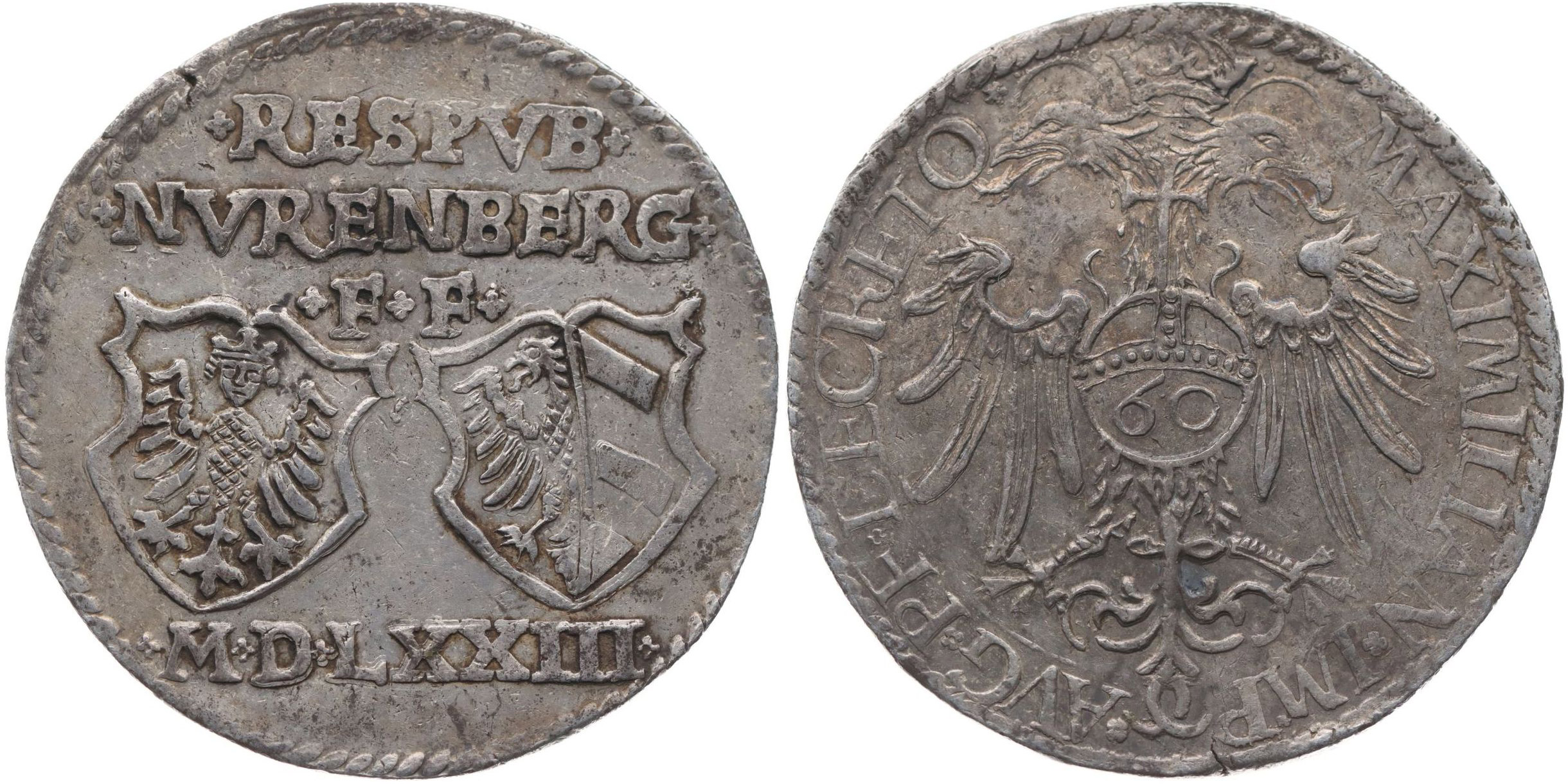 60 Krejcar 1573 s titulem Maximiliána II. Erb.17030, Reim.6958_RR!
