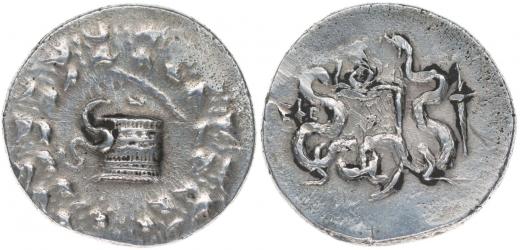 AR Tetradrachma (cistophorický typ), v břěčťanovém věnci posvátný koš, něhož vylézá had / dva proletení hadi, pochodeň SGI.4393_R!