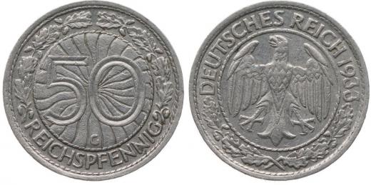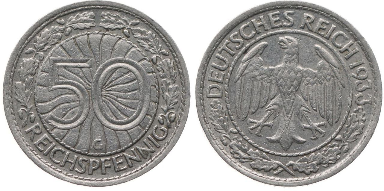 50 Reichspfennig 1933 G, KM.49, J.324_R!