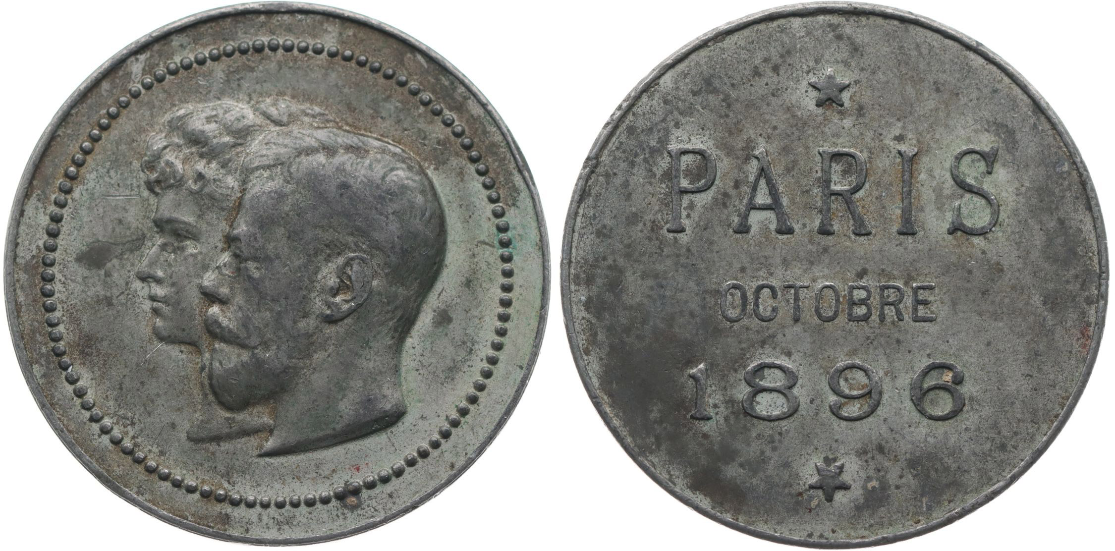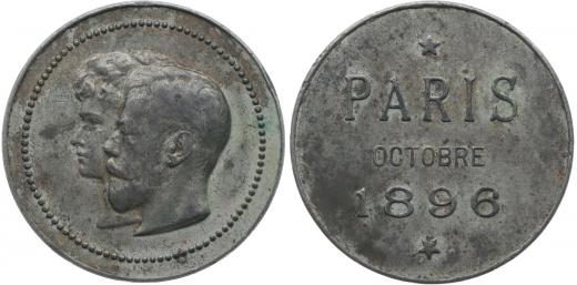 Mikuláš II. a Alexandra Fedorovna - meadile na návštěvu v Paříži 1896 Dvouportrét zleva v perlovci / 3řádk.nápis s vročením, Obecný kov 35 mm
