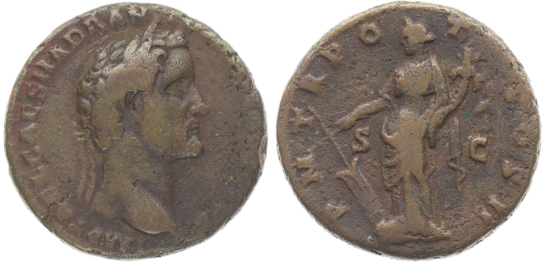 AE As, Rv:"P.M.TR.POT.XXI COS.IIII" stojící Fortuna zleva, S:-, .533b, Kamp.35.221
