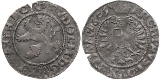 Bílý groš 1609, K.Hora-Škréta, hvězdička za letopočtem, J.18b, MKČ.378 _dr.prasklý okr. R!