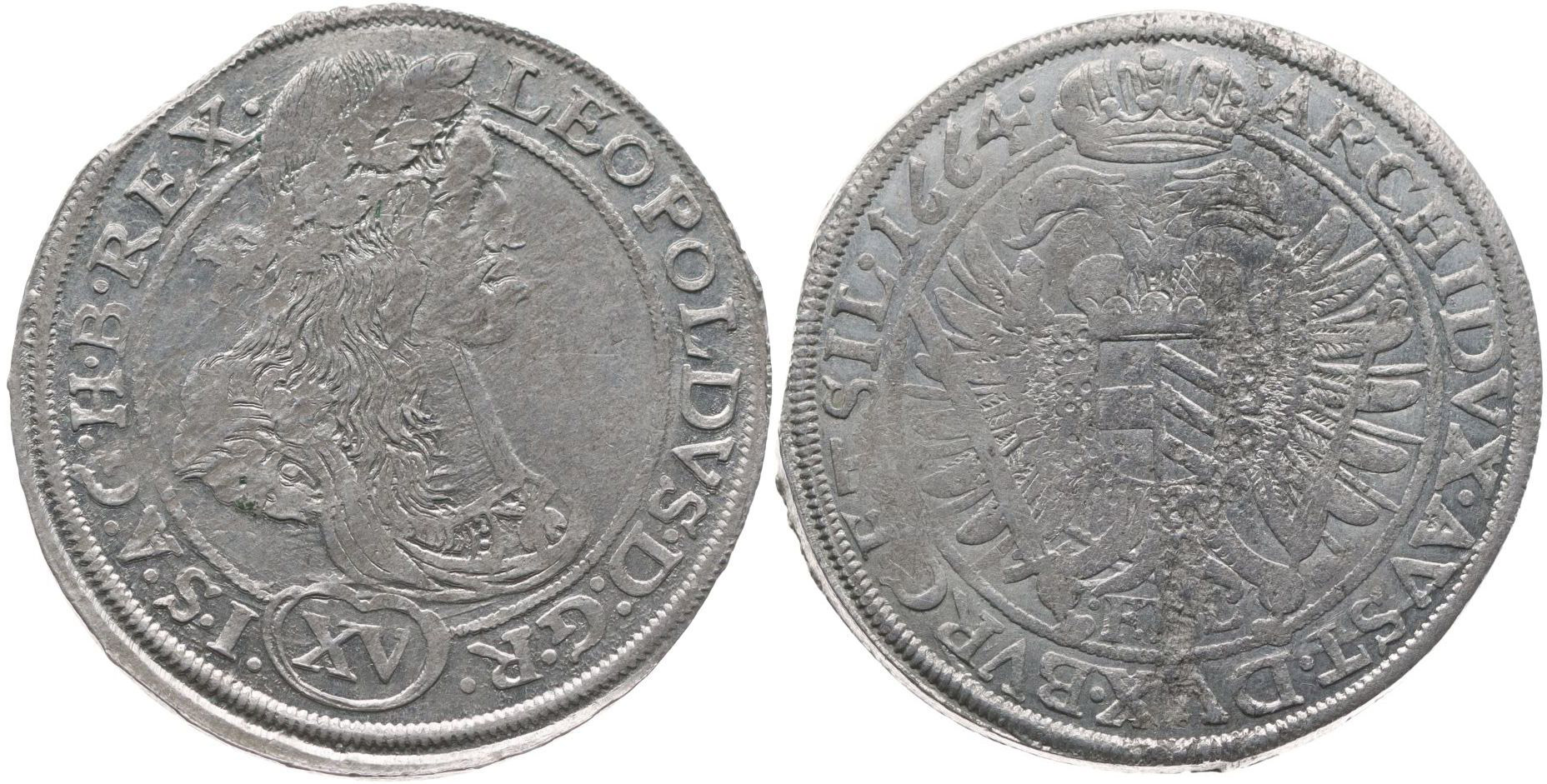 XV Krejcar 1664, Kladsko-Lisola, Nech.970, MKČ.1641, Höll.64.2.4_dr.v.stř. v rev., dr.kraj.stř. RR!